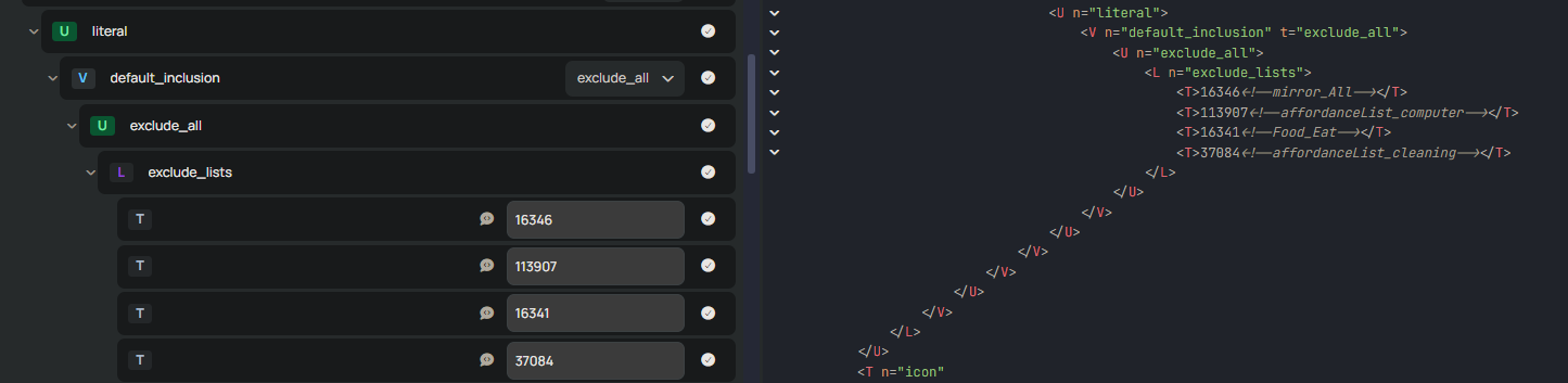Right click on the buttons beneath exclude_lists