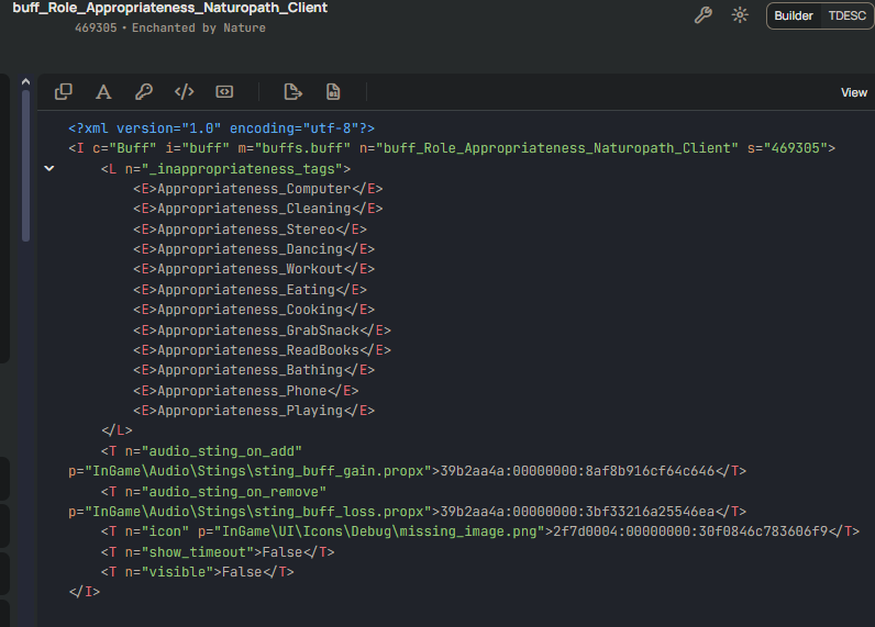 inside the TDESC Builder, because I just assumed that "Appropriateness" is what tells Sims what's appropriate behaviour and what isn't. And...